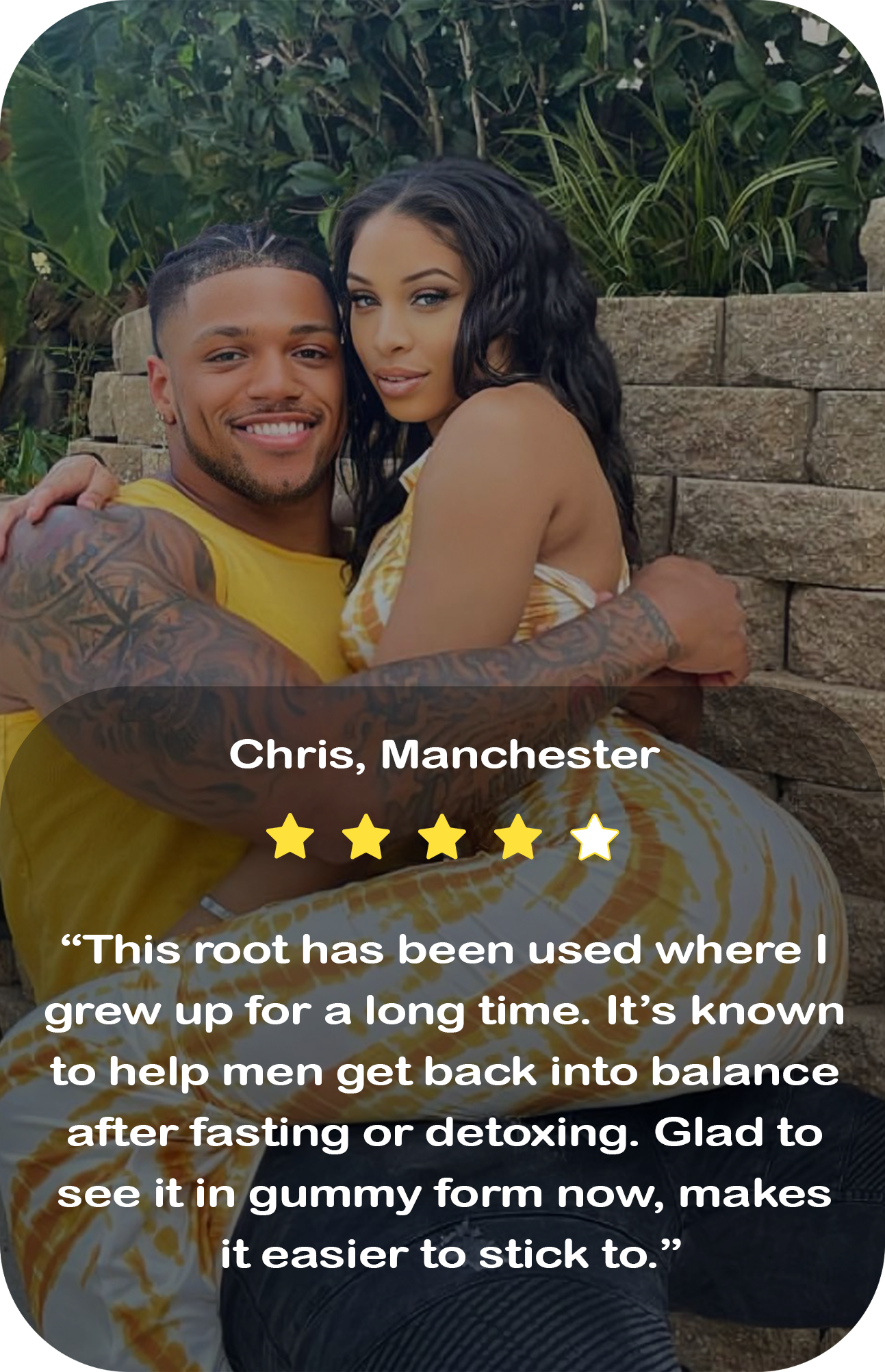 "I’ve tried maca, tongkat ali, all the usual stuff. This was different. After about 10 days, I started waking up with more energy and… let’s just say mornings were like they used to be in my 30s. My wife noticed before I even said anything. I’ve had no side effects, and I actually like the taste of the chews. Much easier than swallowing capsules."