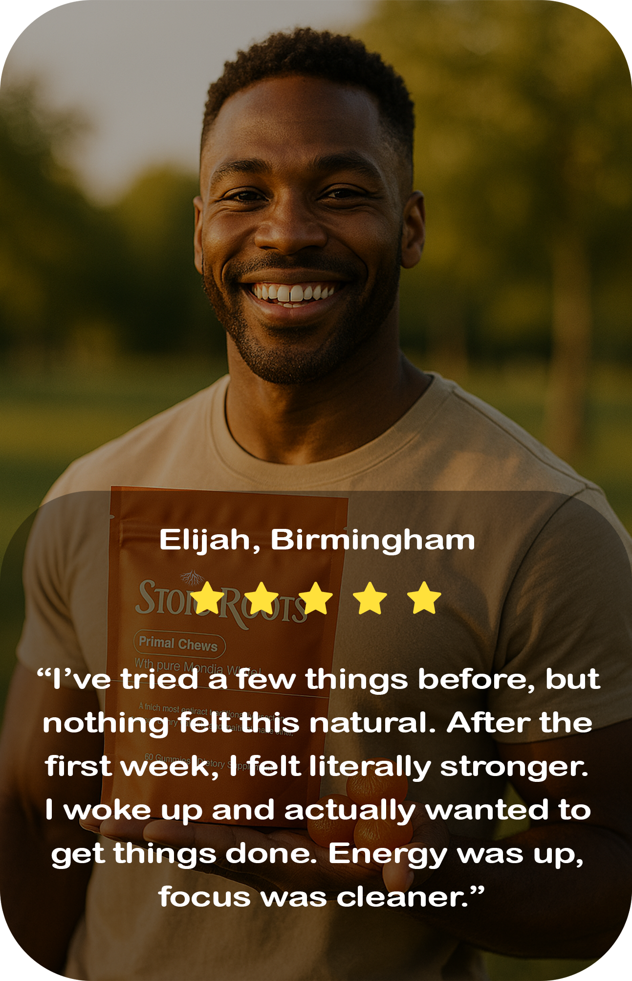 Primal Chews™ helps realign your body and mind using ancient roots traditionally used to support clarity, vitality, and natural male drive. Use this to stay disciplined and focused.